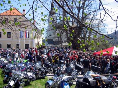 na zborno mesto v Ribnico, kjer se je nabralo približno 1500 motorjev