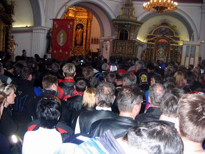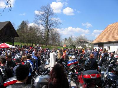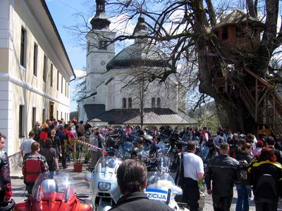 mašo je mnogo motoristov moralo spremljati tudi zunaj, cerkev je bila