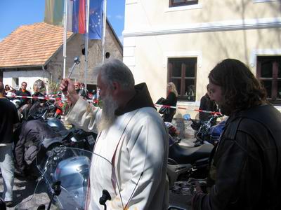 Niko, ki je tudi sam bajker je požegnal naše motorje, med pridigo pa je
